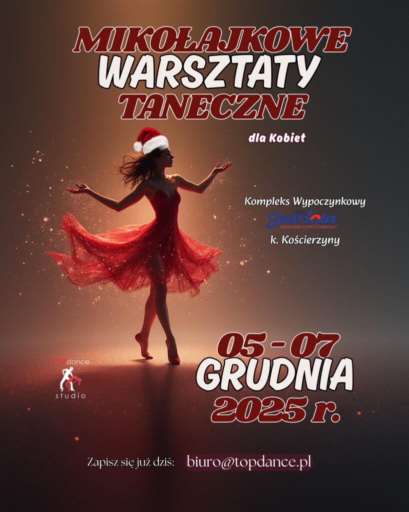 Zapraszamy na wyjątkowy, pełen tańca i kobiecej energii wyjazd integracyjny dla kobiet, który odbędzie się w świątecznym klimacie – z mikołajkowym party, ciepłem grudniowych dni i atmosferą pełną blasku!